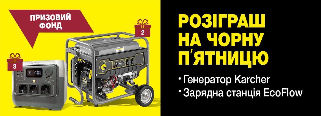 Розіграш 2 шт. бензинових генераторів Kärcher PGG 3/1 та 3 шт. зарядних станцій EcoFlow RIVER 2 Pro серед покупців k-shop.com.ua